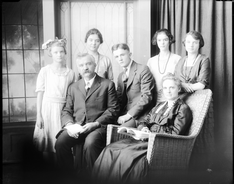 - Portrait of a family of seven (two men, five women).