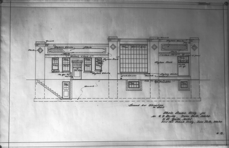 - Blueprints for the 2nd Ave E elevation of the Bisbee Studio. Plans drafted by Twin Falls architect Ernest Gates.