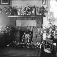 - One of the fireplaces in the Bisbee Studio. An embedded epigraph reads, "God's In His Heaven - All's Right With The World."