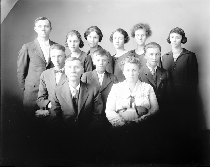- Portrait of a family with one woman, one man, four boys, and five girls.