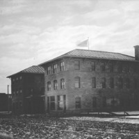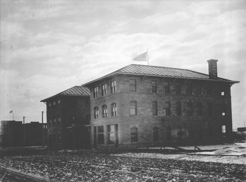 Perrine Hotel, shortly after construction; looking southeast along a muddy Main Ave.