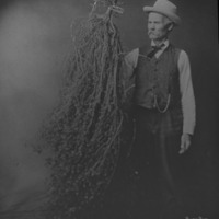 - "Alfalfa;" man in studio, holding a large alfalfa plant.