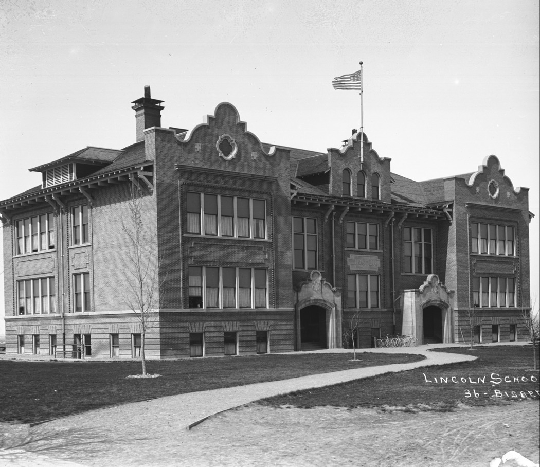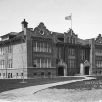 - "Lincoln School;" with landscaping, soon after construction. (This building was demolished in 1975.)