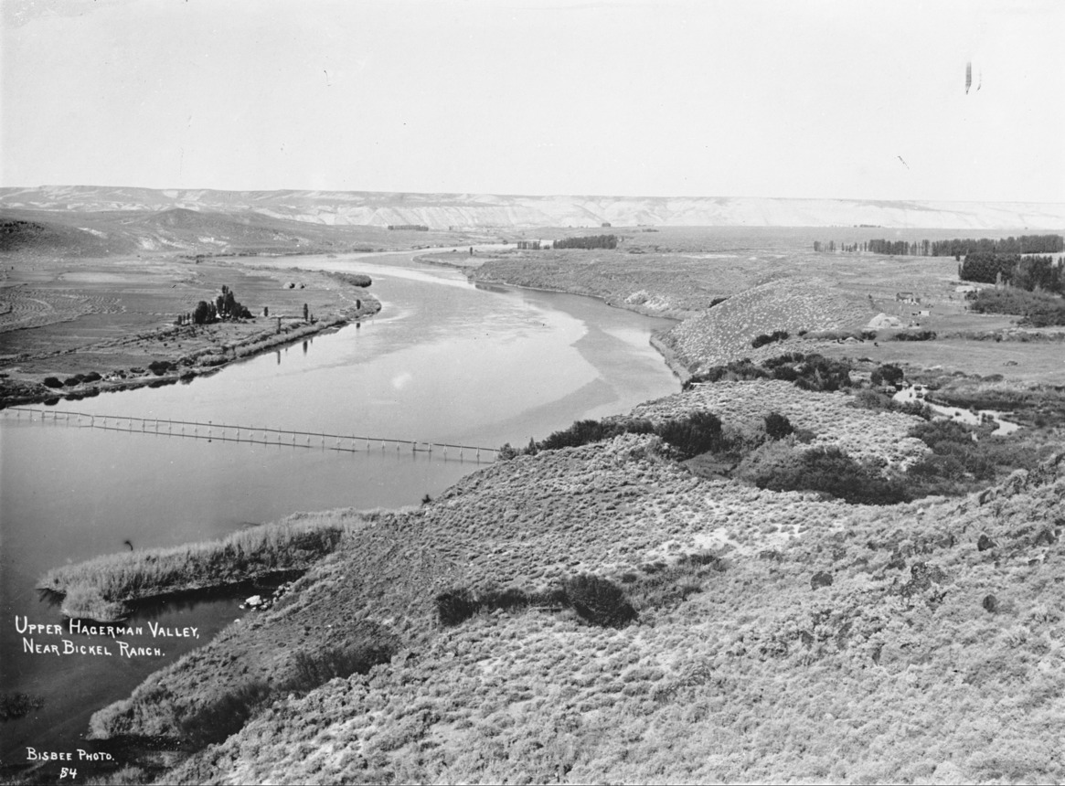 - "Upper Hagerman Valley near Bickel Ranch;" wide view of the Snake River