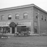 - The Golden Rule store; automobile parked in front on unpaved street.