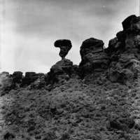 - "Balance Rock;" view of Balanced Rock from bottom of valley