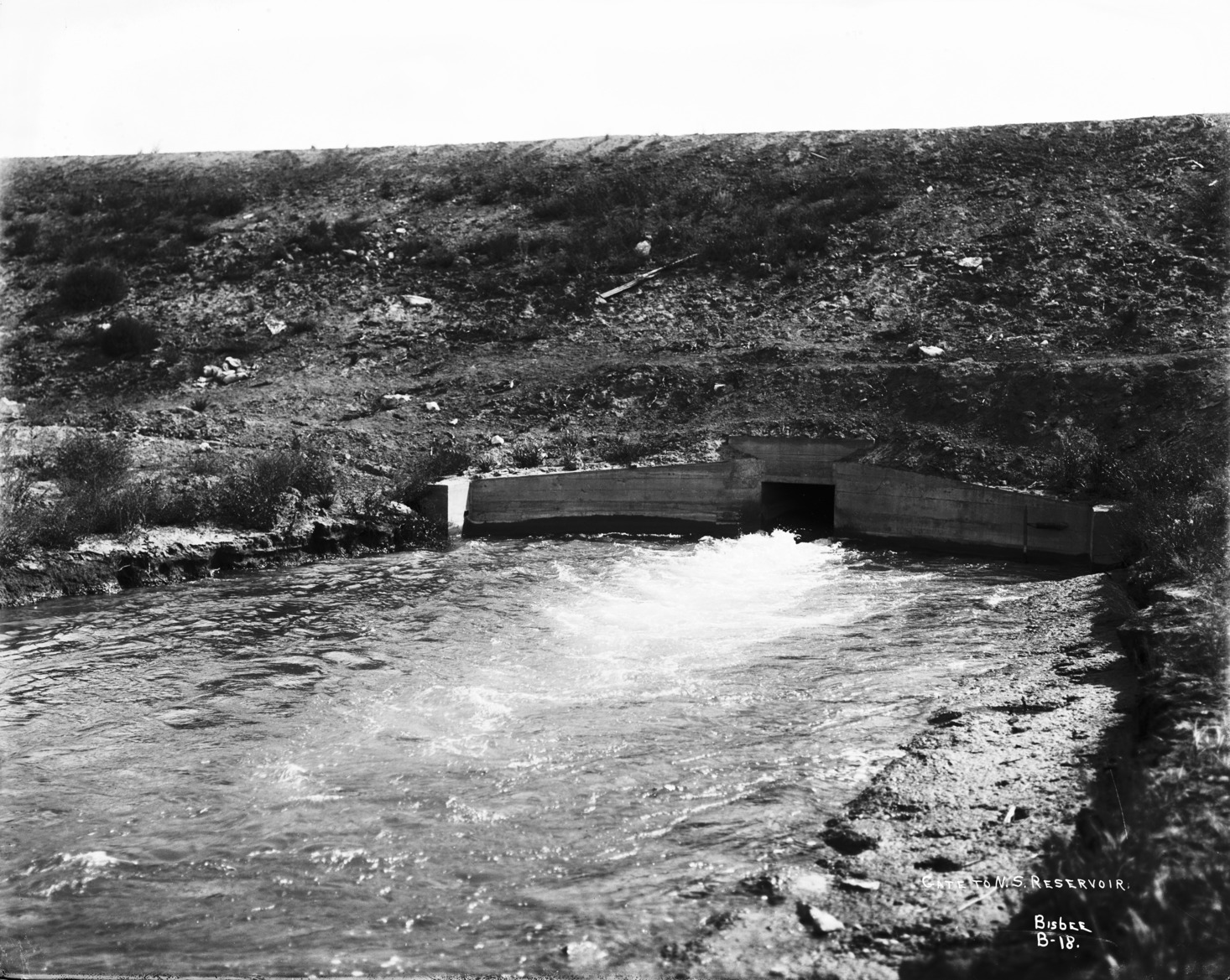 - "Gate to N. S. Reservoir;" An oulet from the North Side Dam