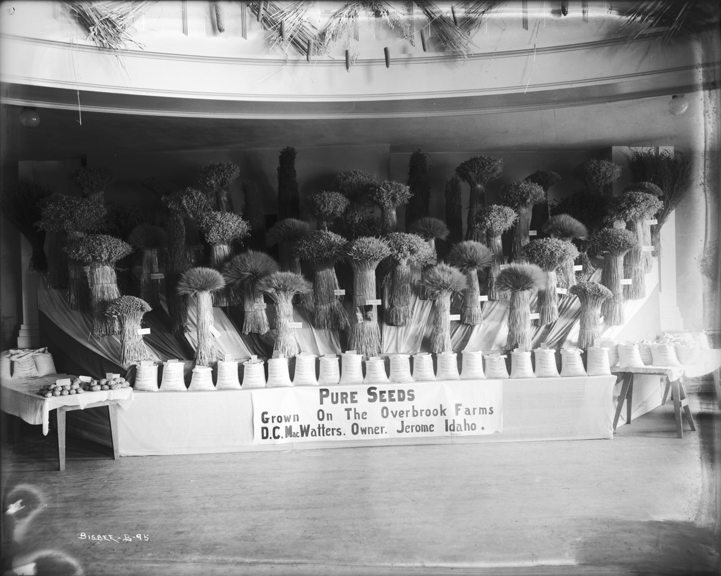- Produce display; a sign at front reads, "Pure Seeds Grown on the Overbrook Farms; D. C. MacWatters, Owner; Jerome, Idaho