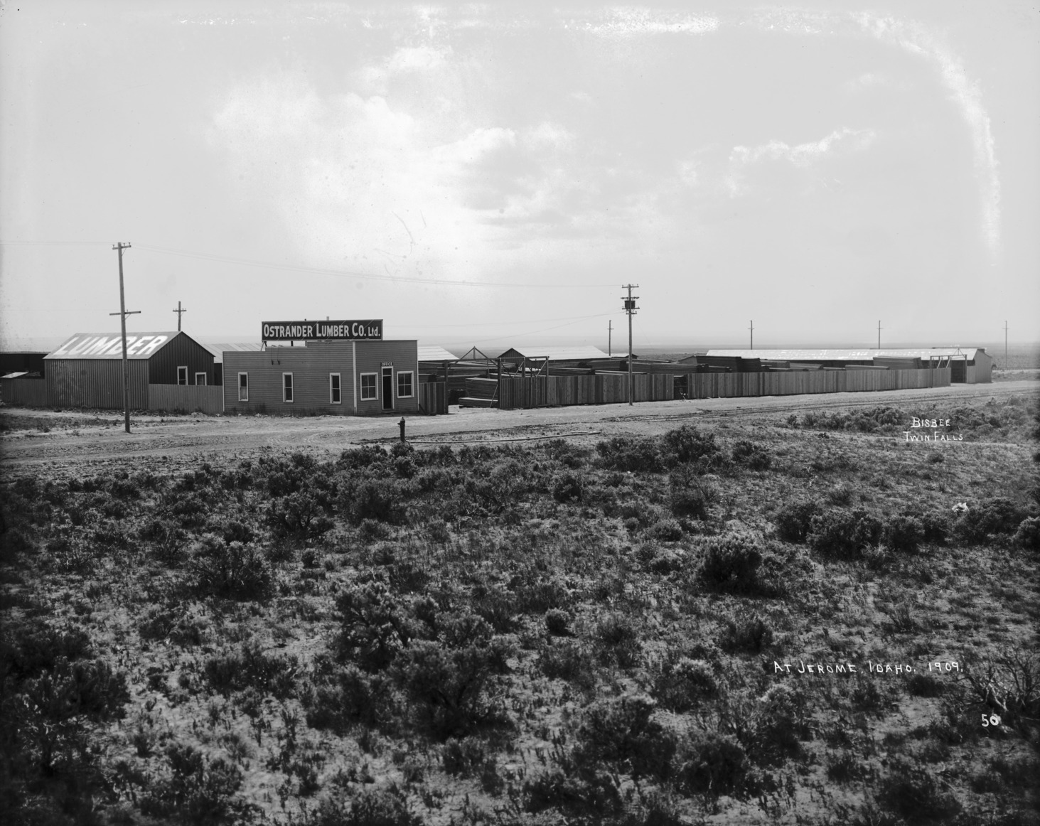 - "At Jerome, Idaho, 1909;" Ostrander Lumber Company buildings and yard.