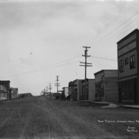 - "Main Street, Jerome, Idaho, 1909;" view down the street. Visible businesses include: Jerome Drug Co; Owens and Kinney, Civil Engineers and Surveyors; Stroud-Sprague Realty Co, Ltd; Haddock Land Co; Hardwick & Co. Real Estate; and also cigar and tobacco seller and cafe.