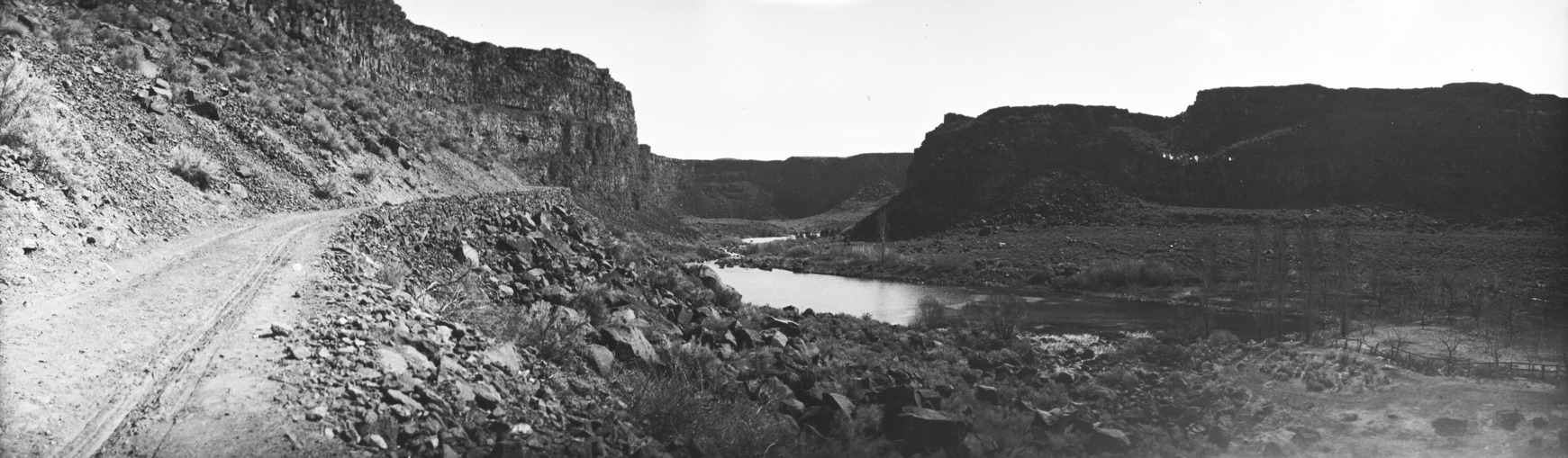 - Grade into the Snake River Canyon, from the north side; Blue Lakes below.
