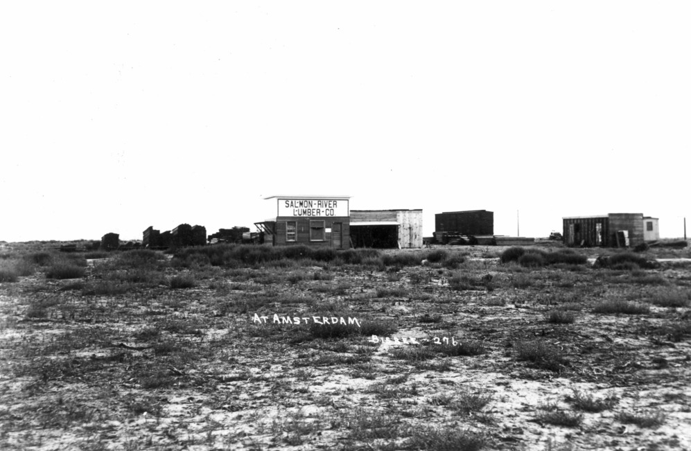 - "At Amsterdam;" A wide view of Amsterdam, showing the Salmon River Lumber Company, and a few other buildings.