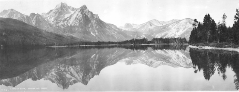 - "Stanley Lake, Custer County, Idaho;" panoramic view of the lake and Mt. McGowan.