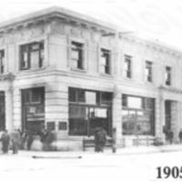 {The date on the photo of 1905 indicates when the building was constructed; the automobile (car) and paved streets put the date of the photo much later.}