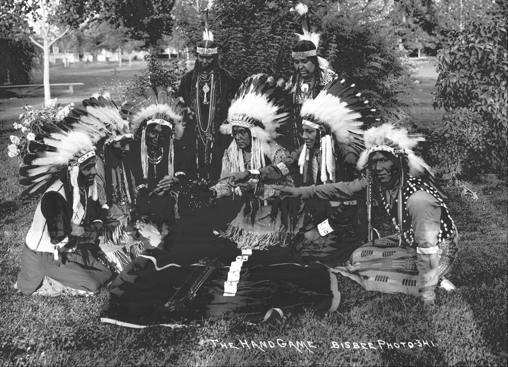 - "The Hand Game;" Native Americans pose while playing a traditional game.