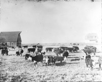 2050 "Registered Herefords on H.T. West's No. 1 Ranch, 1 Mile South of Kimberly;" cattle stand in a field; a barn and house in the background. -