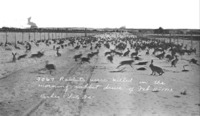 PC-2299 "3067 Rabbits were killed in the morning rabbit drive of February 11, 1913;" rabbit drive, with hundreds of rabbits in the foreground being pushed down a lane by a large group of hunters in the background -