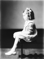 1804 Portrait of a little girl, seated, looking over her shoulder with her back to the camera.