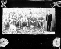 1785                Photo taken of two photographs. One shows a group of men seated outdoors, another with a single man standing in a studio.