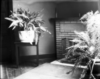 1700 Interior of Bisbee Studio. Ferns in vases and fireplace are visible.