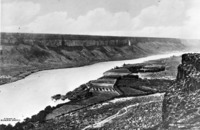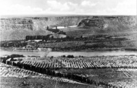 GB 064 Blue Lakes Farm, the Perrine land and orchard, looking north toward Blue Lakes in the Snake River Canyon. {May have been hand-colored from original photo 403.}