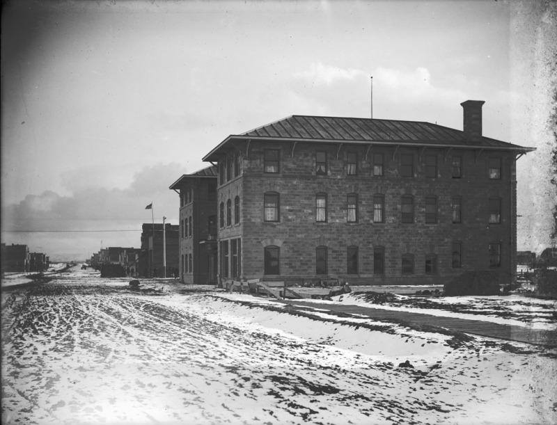 View of early Twin Falls, showing the Hotel Perrine and other new buildings along Main Ave, looking southeast.