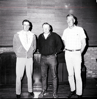 KEL 608 Four men attend the Northeast Elko Soil Conservation District meeting. The man on the far right is Harvey Hale. The other three are not identified. The luncheon and business session were held at Cactus Pete's at Jackpot.