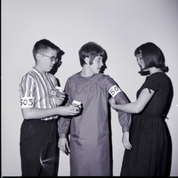 KEL 534 Preparing for the annual SOS drive to collect funds to purchase surplus food for hungry nations are, from left to right, David Cross, Beverly Martinsen, and Teresa Cole. The event is sponsored by the Twin Falls Ministerial Association, and junior and senior high students from eight different Twin Falls churches participated.