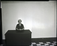 KEL 489 Mrs. John Birrell, president of the Twin Falls Federated Music Club, sits behind a desk. She is wearing a black dress.