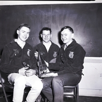 Diary products contest winners display their team trophy. The Kimberly team won the South Magic Valley district FFA dairy products contest. From left to right are Marvin Anderson, Loren Honstead and John Hamby. Anderson also was the individual high point scorer in the contest.