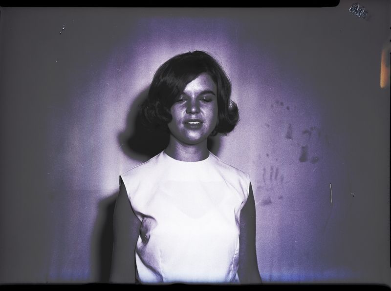 Carol High, dressed in a white shirt and dark skirt, shows off her short flipped bob hairstyle from a front view.