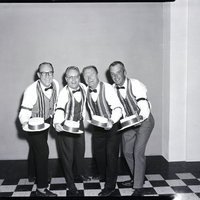- Dilettantes members Ivan Squires, Del Slaughter, Henry Wills, and James La Grone, dressed in striped vests and bow ties, pose with their hats after being selected for the Dilettante Group of the Magic Valley's production of "The Music Man."