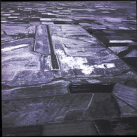 An aerial photograph shows the Twin Falls Joslin Field airport. A large runway is visible, with the number 7 painted on the end. Taxi lanes are seen to the side of the runway. Several roads, fields, and trees are visible in the aerial view.