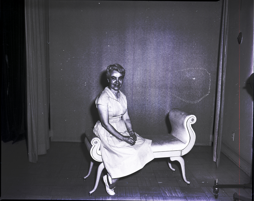 - Mrs. Robert Williams, senior regent of the Women of the Moose Twin Falls Chapter No. 135 and photographer at Williams Studio, sits on a settee. She is wearing a plaid dress.