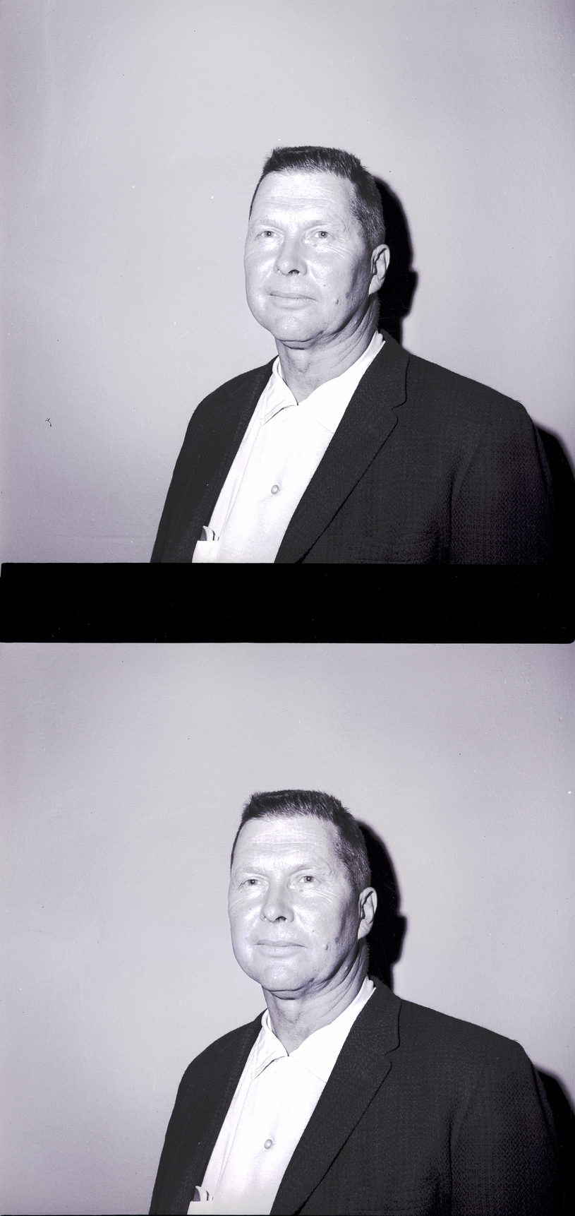 Ned. D. Millard, district forest ranger on the Twin Falls Ranger District of the Sawtooth National Forest, retires from the U. S. Forest Service. He is dressed in a jacket and a white button-up shirt.
