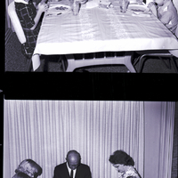 The family of Reverend and Mrs. Eugene Tjarks pray around a dining table during the Thanksgiving holiday. Seated from left to right are Mary Tjarks, Pamela Tjarks, Pastor Tjarks, Mrs. Tjarks, Kathleen Tjarks, and Irian Tjarks. Pastor Tjarks is minister of the Twin Falls Our Savior Lutheran Church.