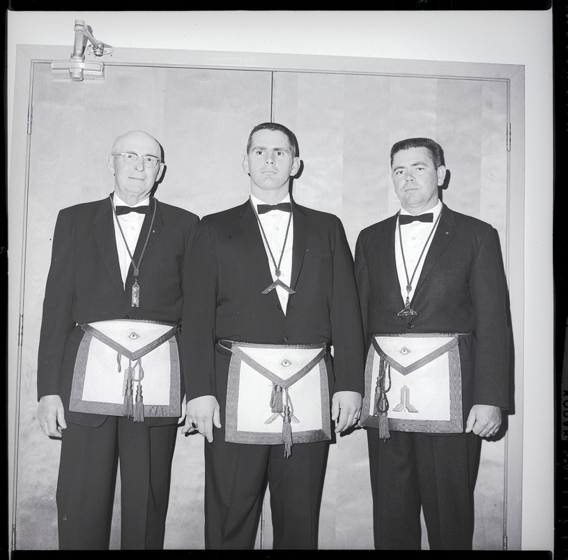 - Installed during ceremonies at the Masonic Temple were, from left to right, Floyd Bandy, junior warden, Keith Jensen, worshipful master, and Robert Black, senior warden. The men all are members of Kayler Lodge No. 94.