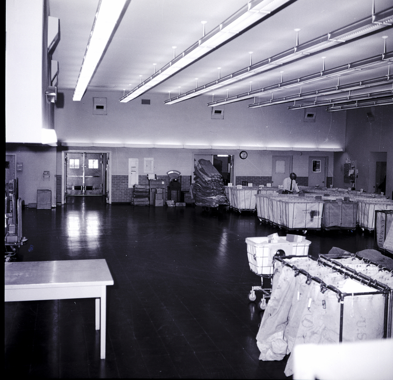 - Looking over empty hampers that were bulging with undelivered Christmas parcel post only a few days ago is Albert Hoover, parcel post delivery man for the Twin Falls Post Office.