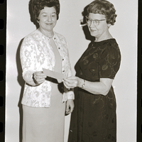 Presenting a $150 check for the Sun Valley Music Camp to Mrs. Donald Youtz, scholarship