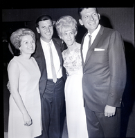 KEL 910 001 From left to right, Mr. and Mrs. Jim Pugliano and Mr. and Mrs. Jerry Haynes visit at a formal dinner-dance held by at the Welcome Wagon Newcomers Club at the Blue Lakes Country Club. The men are dressed in suits and ties and the women are wearing dresses.
