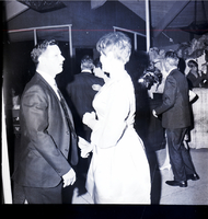 KEL 909 From left to right, Mr. and Mrs. Oliver Molyneux and Mr. and Mrs. Clarence Werner dance at a formal dinner-dance held by the Welcome Wagon Newcomers Club at the Blue Lakes Country Club. The Rubaiyats are playing musical instruments in the background in front of a rock fireplace.